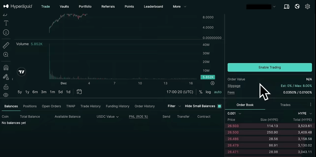 그럼 이제 하이퍼리퀴드에서 현물 코인을 구매할 준비가 완료되었다.